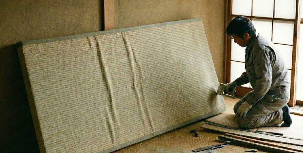 まず知っておいてほしいのが、日本の賃貸借契約における「原状回復」の考え方です。国土交通省のガイドラインによれば、故意や過失による傷でなければ、畳の表替え費用は大家さん負担になるケースもあります。しかし、入居者が「自分で良かれと思ってやった工事」が不完全だった場合、それは「不適切な補修」とみなされ、逆に全額負担を命じられる原因になります。素人が施工した畳は、縁の角の立ち方やイ草の並びを見ればプロには一瞬でバレます。特に「角の折り込み」が甘かったり、タッカーの打ち込みが甘かったりすると、次に入居する人の安全性を損なうとして、結局プロの手でやり直しを命じられます。そうなれば、自分で買った材料代と手間、さらにプロへの正規の依頼料という「二重の出費」が発生してしまいます。