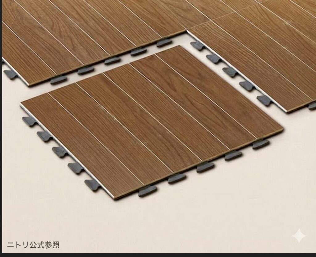 では、本間の部屋に住んでいる人は、ニトリで安くリフォームすることを諦めなければならないのでしょうか?どうしても「ニトリブランドで」「予算を抑えて」解決したいという場合、私が現場でお客様に提案する代替案の一つが、「木目調ジョイントマット(パズルマット)」です。